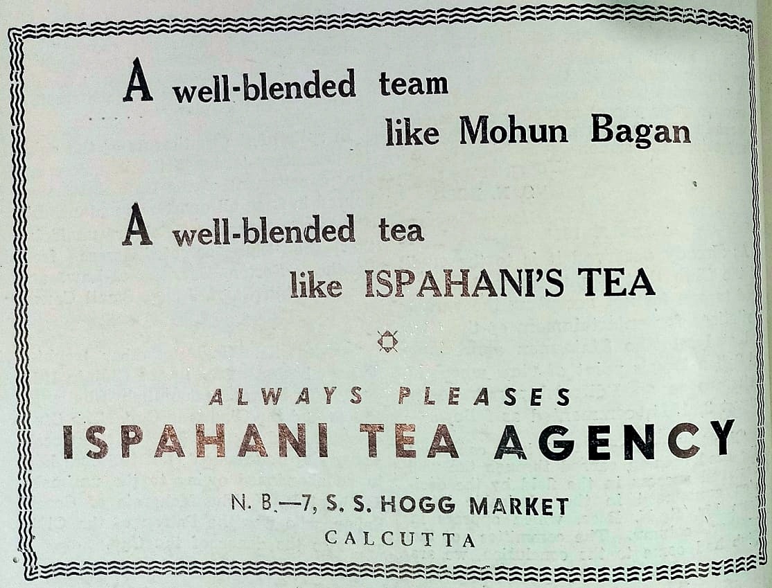 Yes. Ispahani. It’s quite significant, the word is derived from the Iranian city Ispahan or Isfahan. The name has now turned almost a household one in the drawing rooms of the Mohun Bagan fans. Once upon a time, traders from Iran (might be the Parsis) came to undivided India from that city in Iran and started the operations of their famous tea business in Kolkata, Dhaka, Hyderabad and some cities of South India. However, Google uncle might give one some light on their current activities. The image below is doubted to be the crest of the continuation of the same agency though.